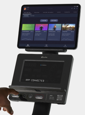 Includes a limited library of essential workouts on the JRNY® app.2 (Tablet pictured on media rack is not included.)