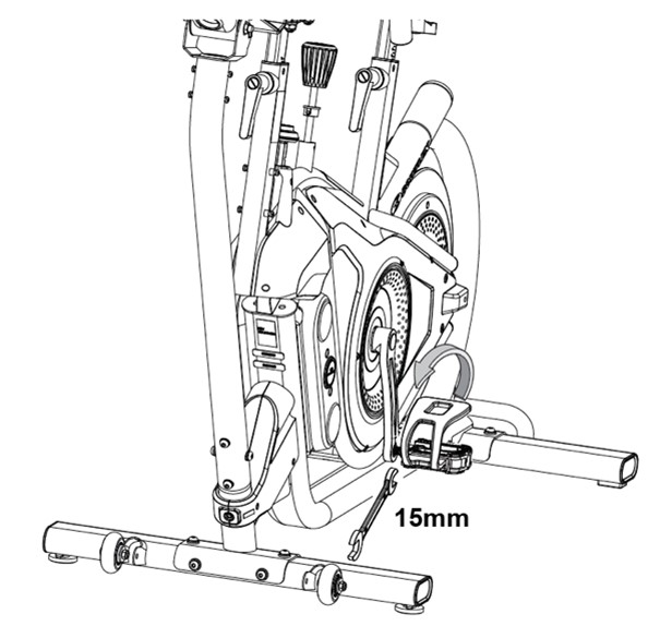 Using a wrench, make sure the pedals are tightened fully to the crank arms. Pedals should be very tight and should be checked weekly to ensure they are tight. Remember that the left side pedal is reverse-threaded, so it should be turned counter-clockwise to tighten.